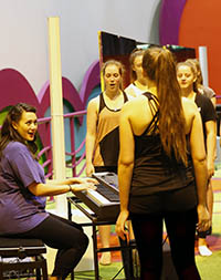 The workshop will commence with a vocal warm-up, followed by the study of a chosen song. A dance warm-up and choreographed combination will follow. Vocals and choreography will later be integrated into a simple staging to create a musical theatre ensemble.